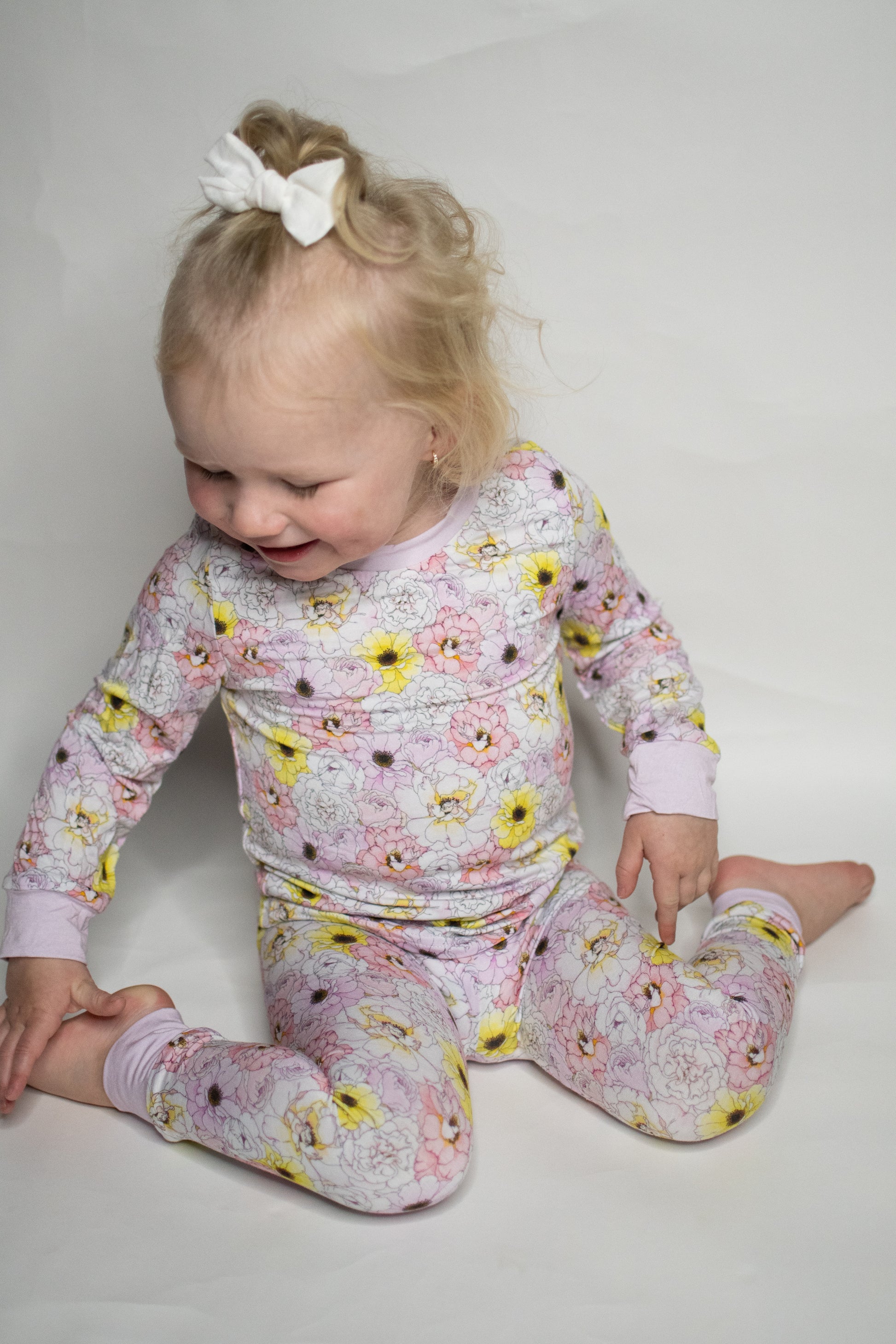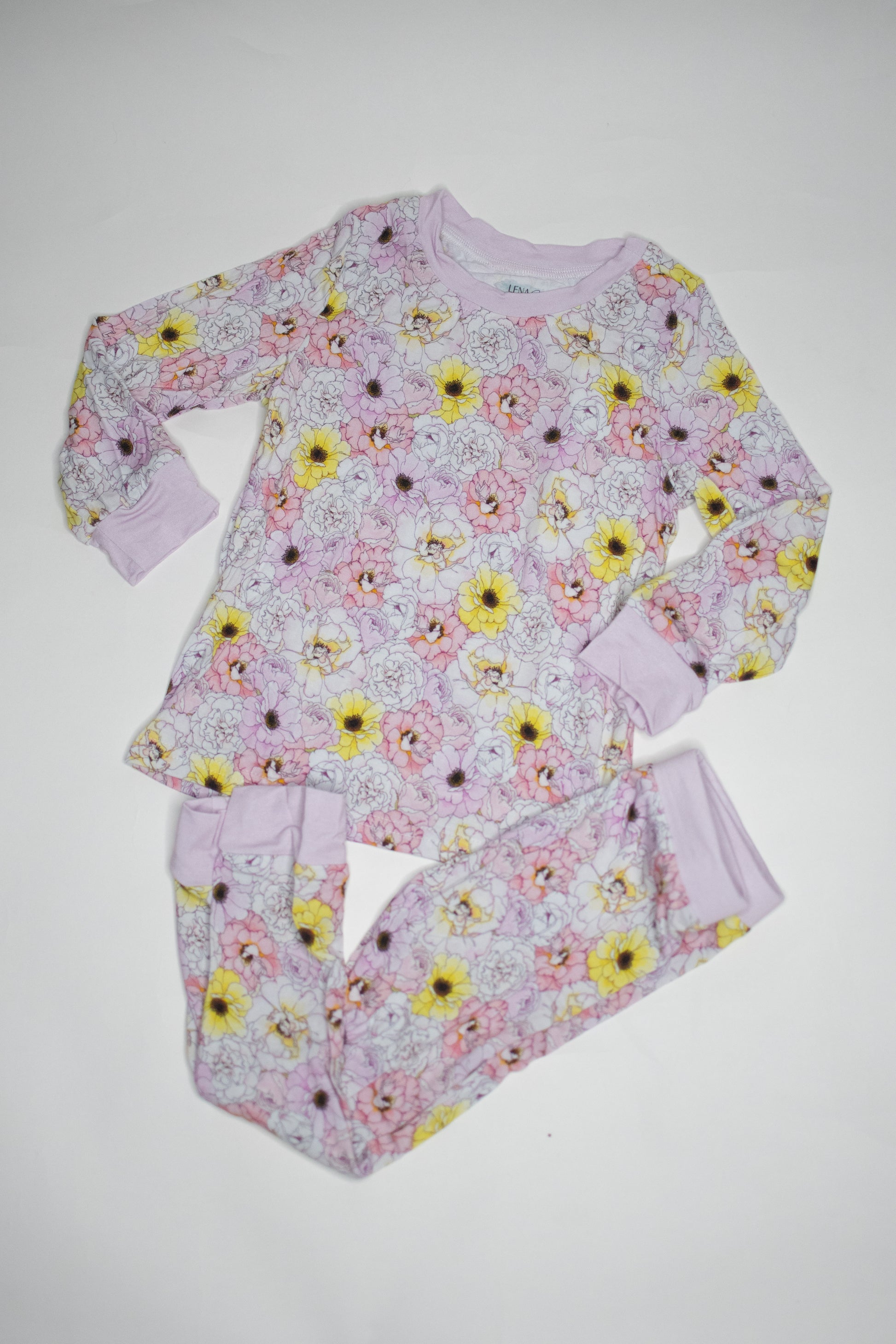 This print is a soft and dreamy garden of florals! With delicate blooms in pastel pinks, cheerful yellows, creamy whites, and hints of lilac, it’s like a springtime meadow in full bloom. The hand-drawn look of the flowers gives it a vintage, storybook charm, while the pale lilac background and matching cuffs keep the overall vibe sweet and gentle. Perfect for little ones who love flowers, fairytales, and sunshine-filled days