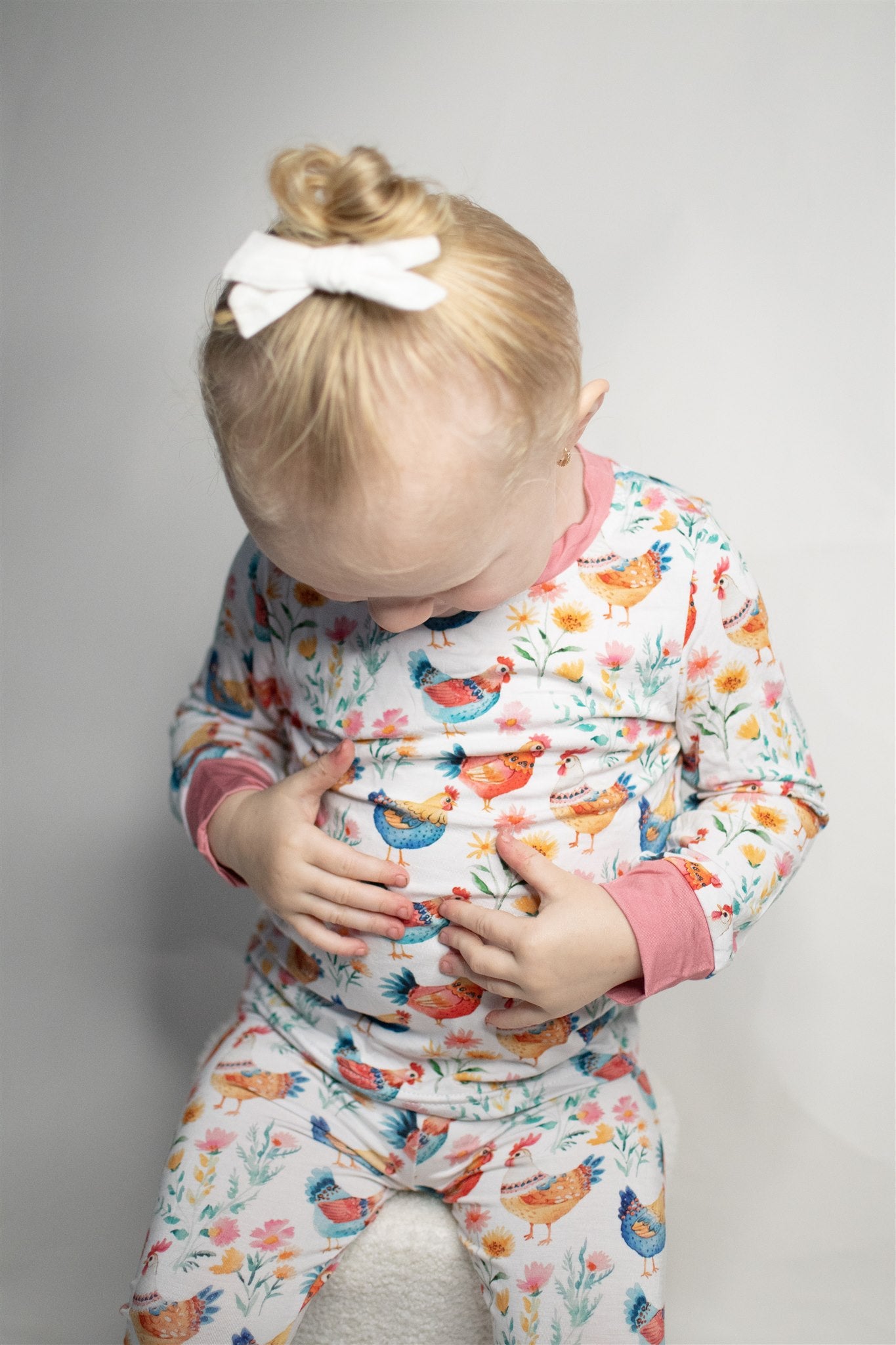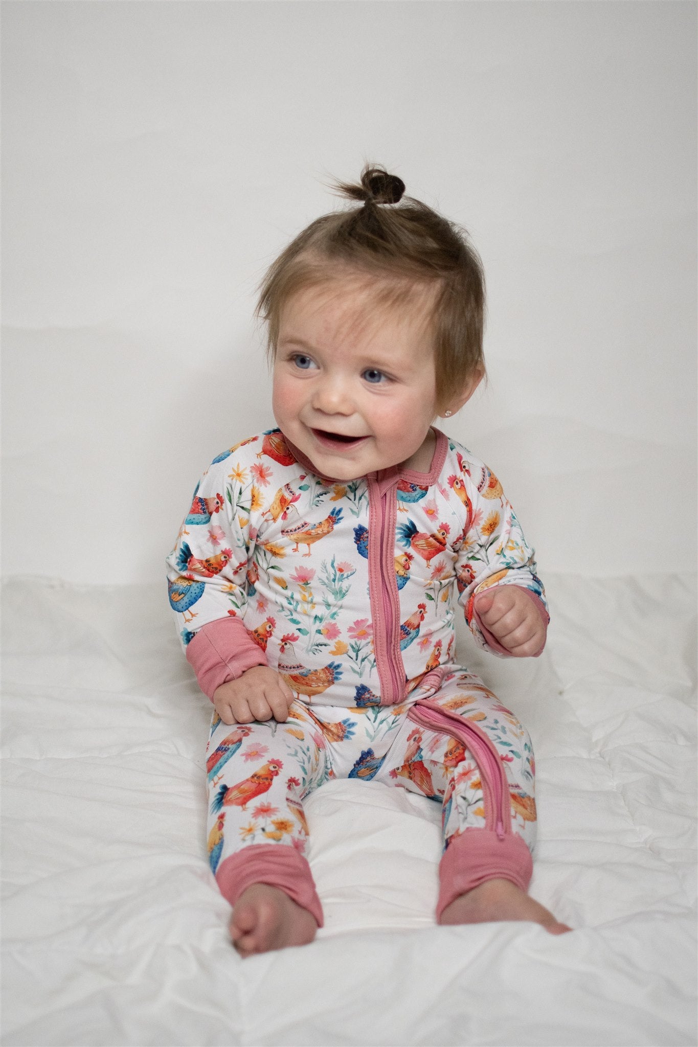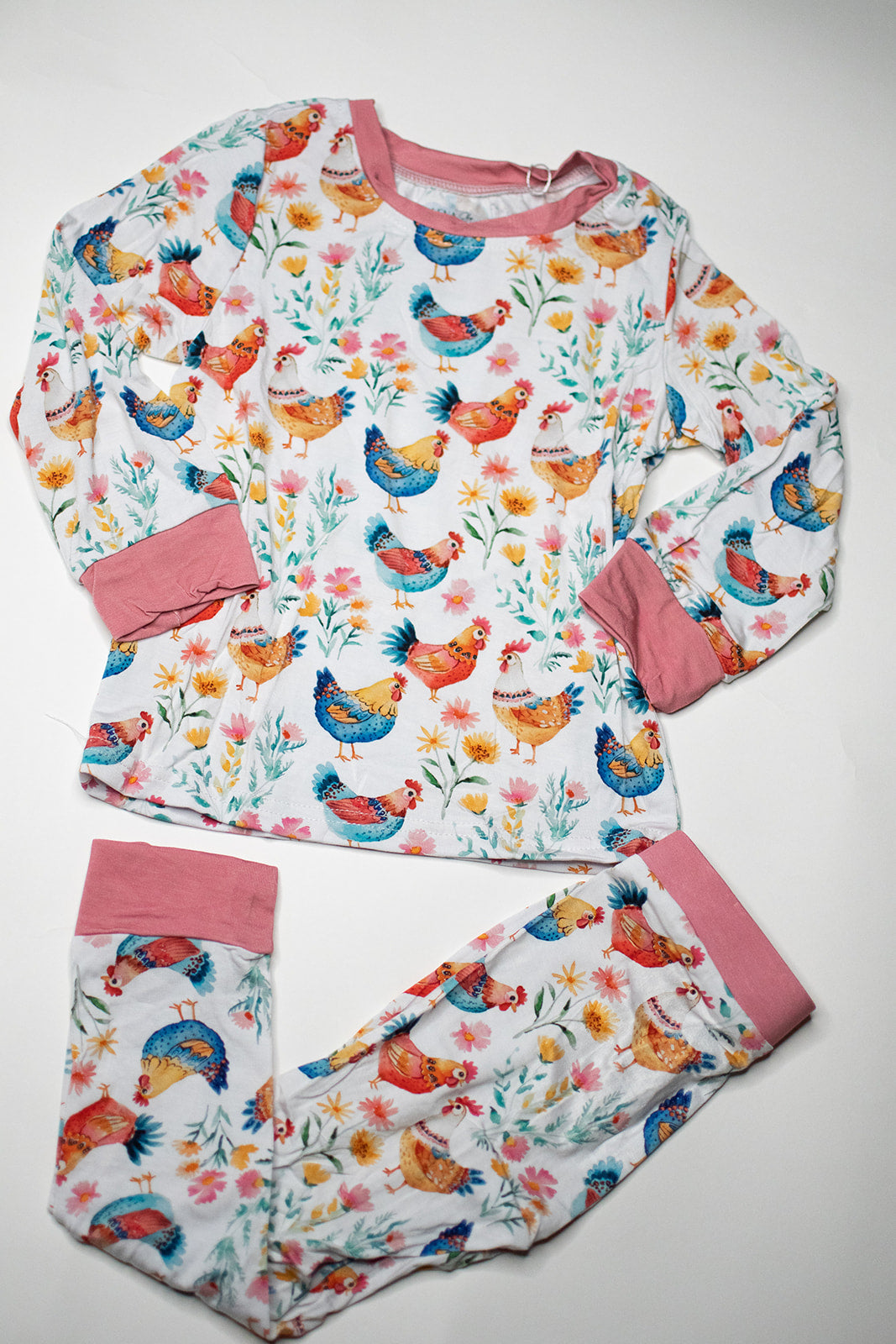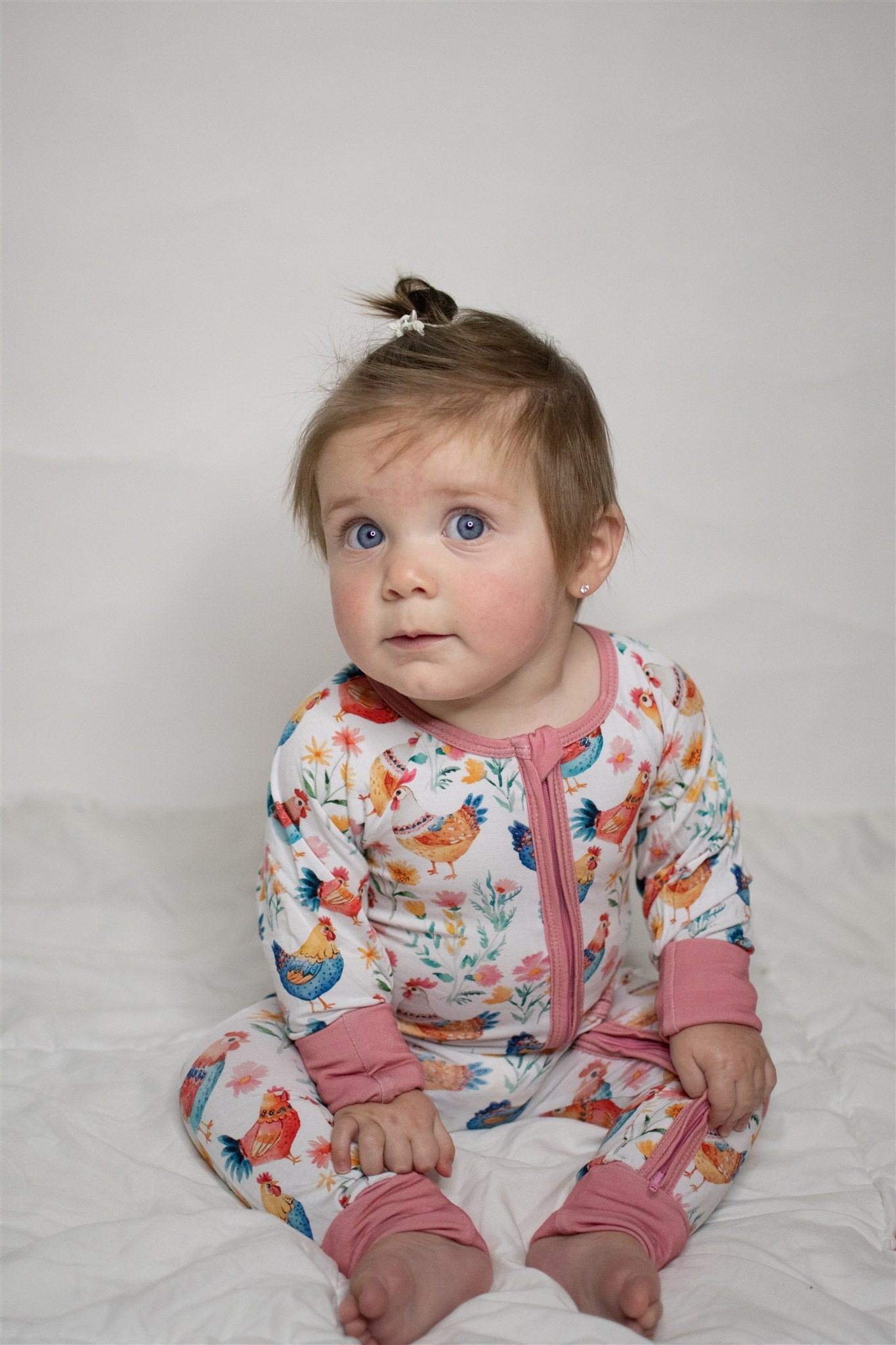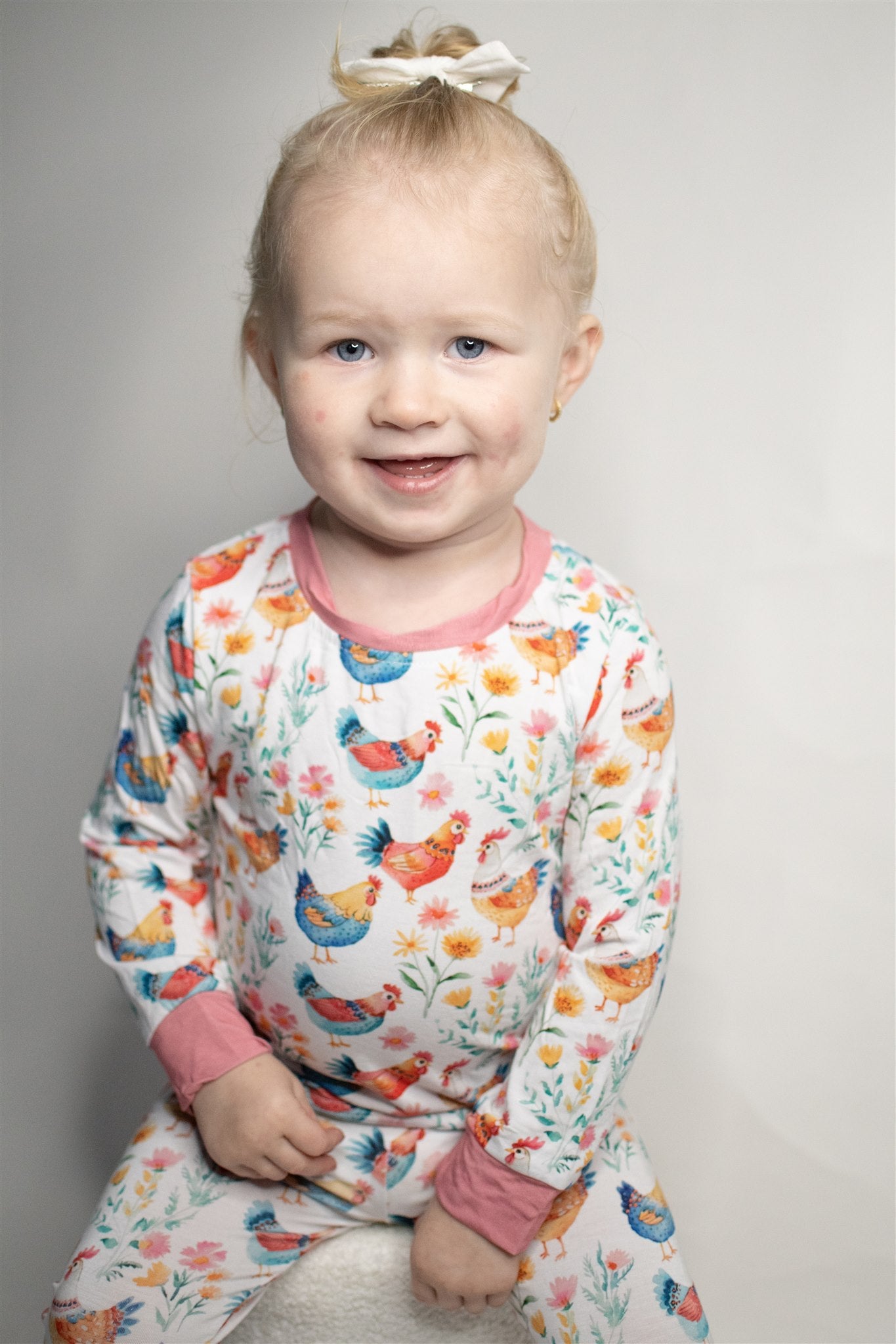 Bursting with barnyard charm, this bamboo print features vibrant, feathered friends strutting among cheerful blossoms in a rainbow of colors. Soft, breathable, and full of personality, it’s the perfect blend of country fun and cozy comfort for your little one.