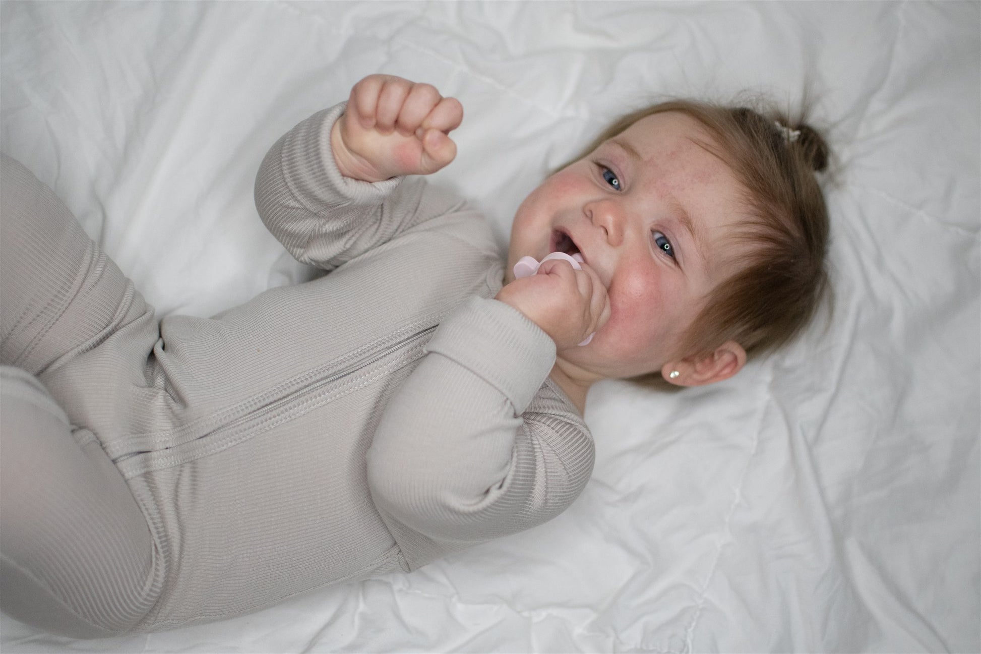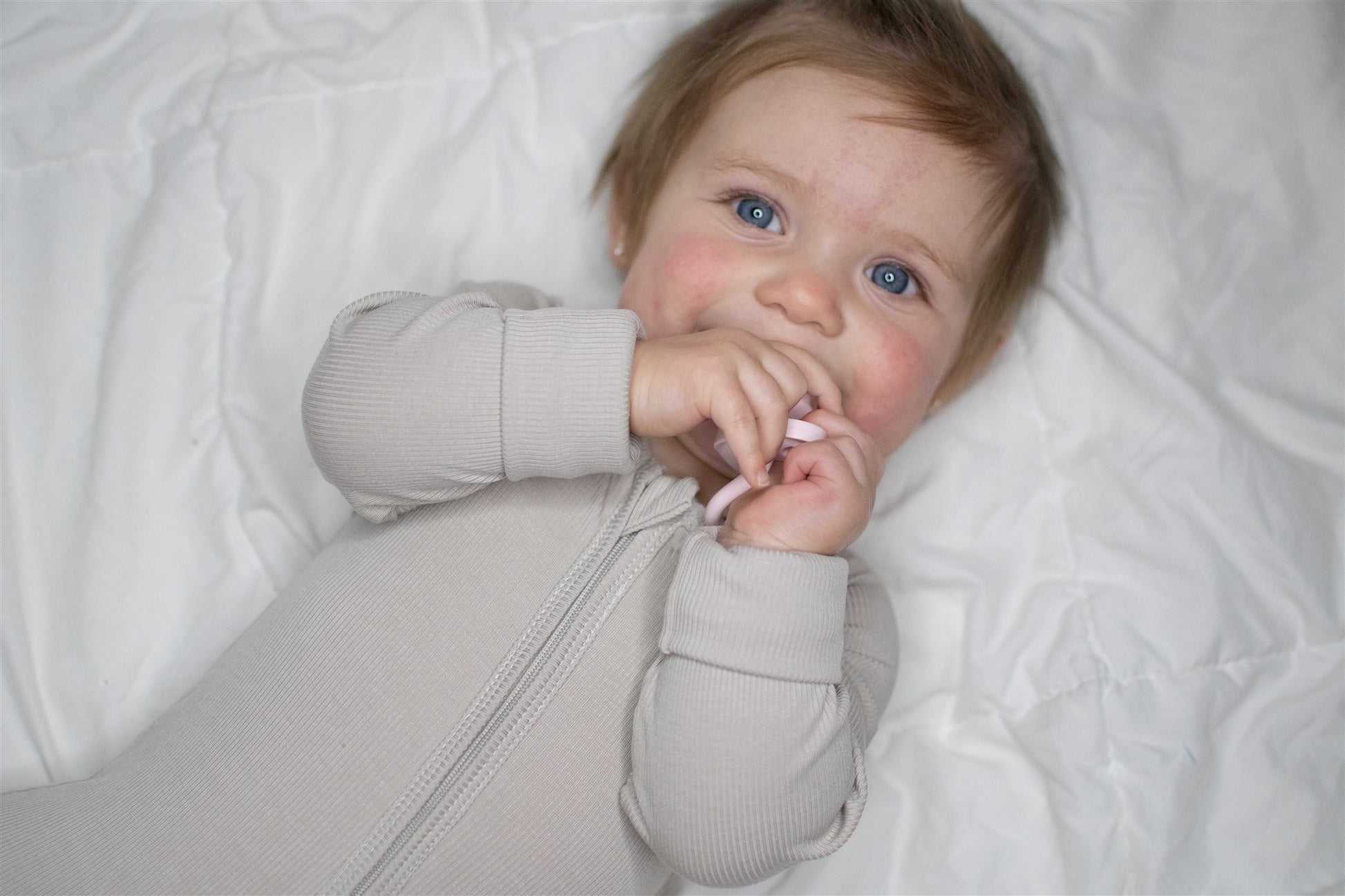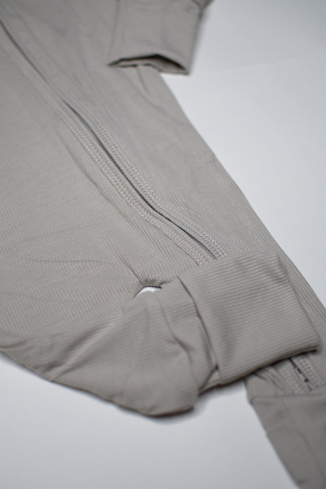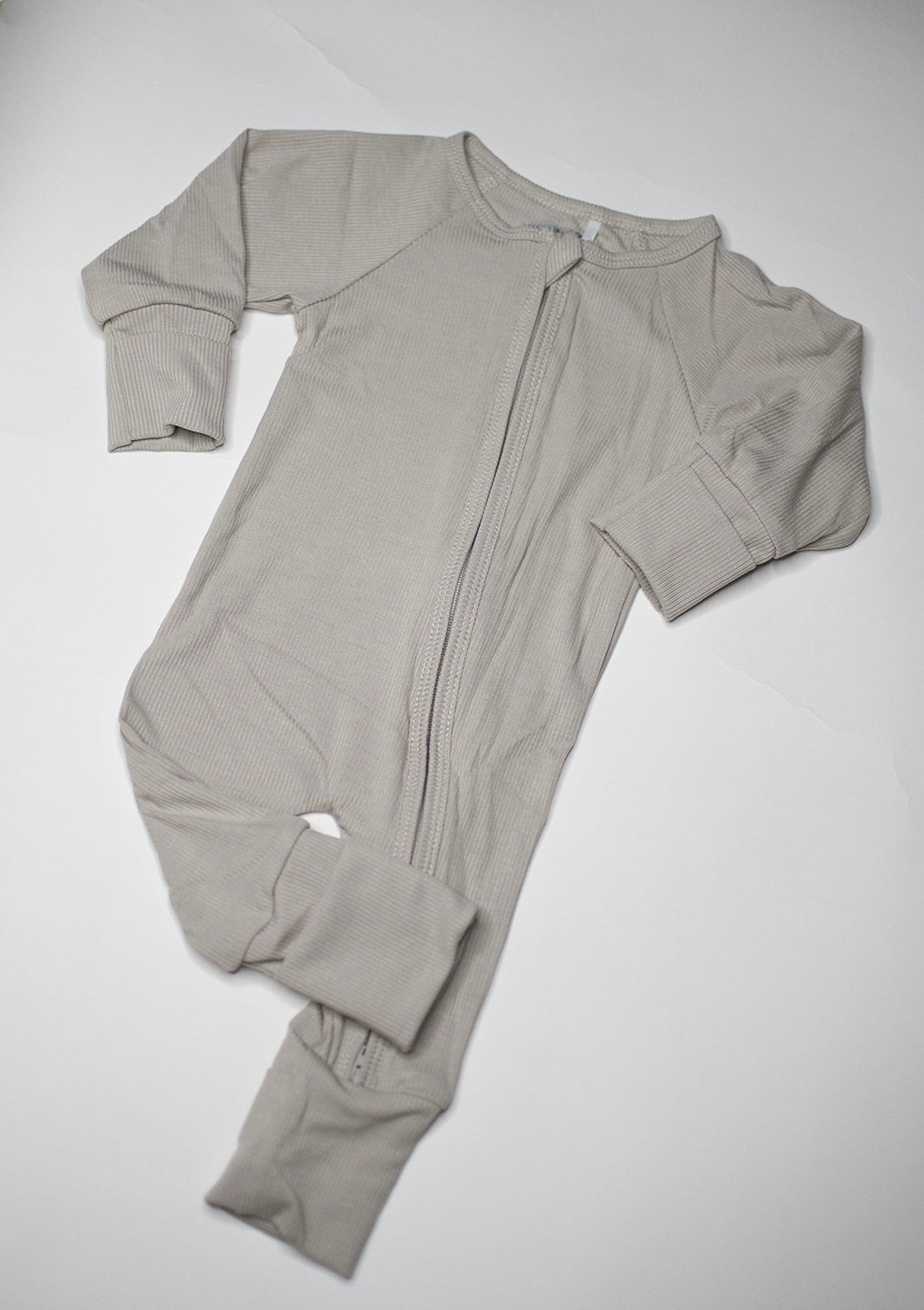 The ultimate in cozy comfort. This ribbed bamboo sleeper in a warm, neutral taupe is buttery-soft, breathable, and oh-so-gentle on delicate skin. The stretchy rib knit moves with your little one for all-day play and all-night snuggles, while the double zipper makes changes a breeze. Perfectly gender-neutral and endlessly cuddly, it’s a wardrobe staple you’ll reach for again and again.